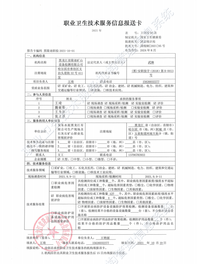 冀東水泥黑龍江有限公司生產(chǎn)現(xiàn)場及石灰石礦山職業(yè)病危害現(xiàn)狀評價