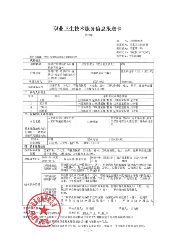 五大連池北山建筑用安山巖礦開采有限公司五大連池市海天南山采石場職業(yè)病危害控制效果評價(jià)